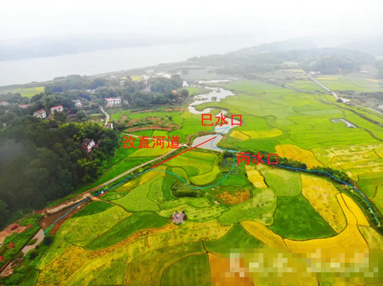 原貌是左边河水在堂前环抱过来(如蓝色线条),和右边的河水相汇在丙水口。改直河道后,左右两边河水相汇于巳水口而去。读者朋友们可以依据自己所学理论,给我们留言,这样改变后会有什么影响。