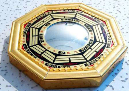 八卦镜中间的太极图将外界良性的气场吸纳,并驱散外界不良的气场。八卦代表天、地、风、雷、水、火、山、泽,融合了宇宙万物。古人使用八卦镜,认为它具有化煞驱邪、旺财趋吉的功能。选用其凸出的弧形镜面,可把对面的煞气散向四方,从而化解煞气对本宅的影响。