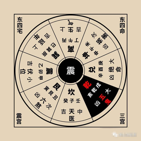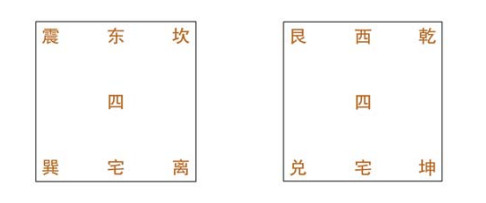 八宅风水中,会根据宅门坐向或宅主的出生年份,来定宅命,宅分东西四宅,命分东西四命,东四宅/命是坎离震巽,西四宅/命为乾坤艮兑。