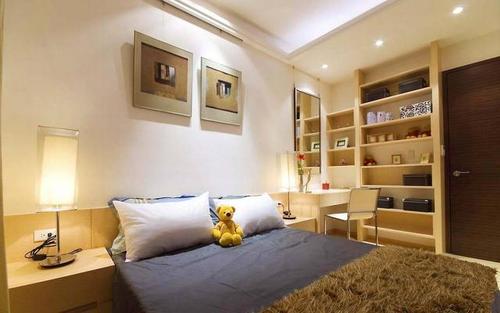 4、卧室风水学中最忌讳的就是横梁压顶,床在摆放的时候一定要注意避免,此外必须要靠着墙远离窗户。