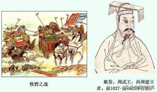 自周文王去世后,他的儿子姬发继位,是为周武王。武王9年(公元前1059年),他们同其他的诸侯会师于孟津,众人皆认为伐纣时机已到,但到武王认为商纣还没有彻底的背离民心。武王11年,纣王杀死了忠臣比干,并关押了箕子。周武王认为时机已到,于是率领军队与商朝军队交战于牧野,史称牧野之战。由于商朝的军队大多数是奴隶组成,于是一溃即散,而纣王也***于鹿台。