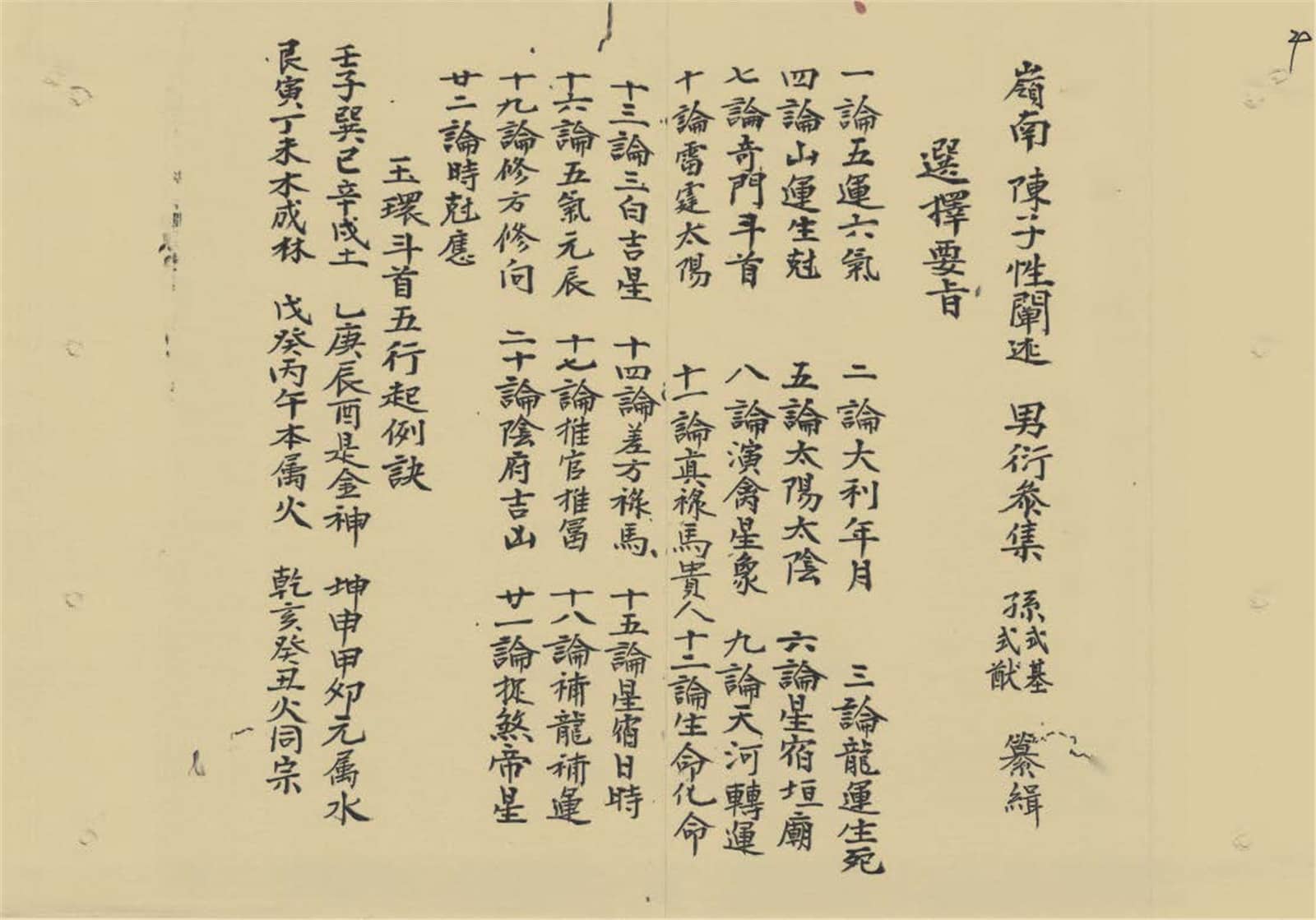 《选择要旨》,岭南陈子性阐述,南衍参集,孙式猷孙式基纂缉,共105个双面,210页。内容包括:玉环斗首五行起例诀,斗首五行二十四山图说,论贵人,鲁班尺式,黄泉曜气歌,天井放水诗诀,逐月砌天井放水吉日,九良星年月所占方位,修作中宫,修中宫避忌,年月开山立向修方吉神注,五子年吉神临山向方定局,五丑年吉神临山向方定局,五午年吉神临山向方定局等。资源下载下载价格为10金币立即购买充值优惠:充50送10,充100送30,充200送100,充300送300!嫌注册账号麻烦?也可添加客服微信:1715524655购买后如有链接失效,可联系客服处理,电话:18530825963因网站大部分为虚拟资源,购买前请认真查看,充值售出后无法退货退款!(晚上10点后客服不在线,如有问题,次日早8点会及时处理。)