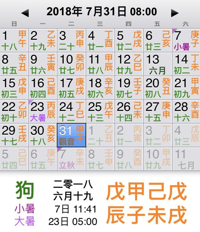 2018年7月31日上午8:00,戊戌年己未月甲子日戊辰时,戌亥空。表面上看,四柱之中存在六重土,未月己土自旺,时辰又见土之水库,甲己化土当为真化。实际上土的性质较为复杂,在十二长生诀中,土既可以从火性看,也可以作水性看,甲己化土,因火生土,土从于火性,较易得到生助而凝固土性,同时火性更易断绝甲木的根气,从而有利于化土;甲己化土,因土克水,土从于水性,较易驱赴克耗而消散土性,同时水性更易彰升甲木的根气,从而不利于化土。